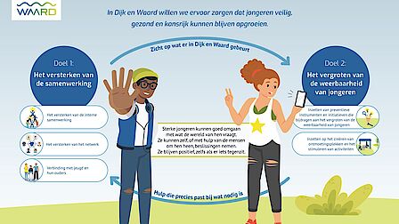 Inzet op het thema Weerbare Jeugd vraagt om een integrale aanpak, waarbij samenwerking nodig is tussen partners uit het veiligheidsdomein, het sociaal domein en het onderwijsdomein. In Dijk en Waard slaan we de handen ineen voor een sterke jeugd. Met het Uitvoeringsplan Weerbare Jeugd wordt beoogd de samenhang op het thema Weerbare Jeugd te versterken en richting te geven aan de inzet op dit thema.