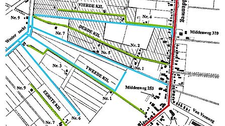 Door de aanleg van de spoorlijn die het pad naar de Westdijk doorkruiste, verviel het pad. Een nieuw pad in oostelijke richting werd aangelegd vanaf de boerderij over een brug over de Westertochtsloot door het bos Scherpenheuvel naar de Middenweg. Later kreeg de boerderij van Vreeker het adres Derde Kil 9. De eerste boerderij aan de Vierde Kil dateert uit 1875, en het bijbehorende pad werd als laatste aangelegd. Op kaarten uit 1960 en 2021 zijn de Kilpaden niet meer herkenbaar, maar ze bepaalden wel de loop van de Cromhoutstraat, de Van Loonstraat, de Middenweg tussen huisnummers 275 en 277, en de Coltermanlaan, evenals de afstanden daartussen. Herkent u op onderstaande kaart nog de vier Kilpaden?